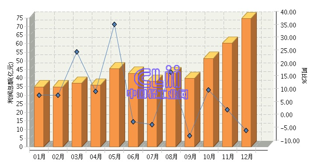 2016年全国家具行业月度利润总额及同比