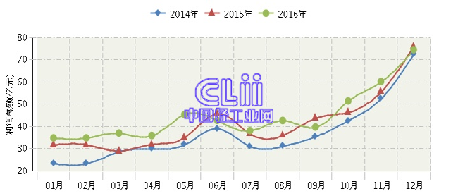 全国家具行业连续三年月度利润总额对比