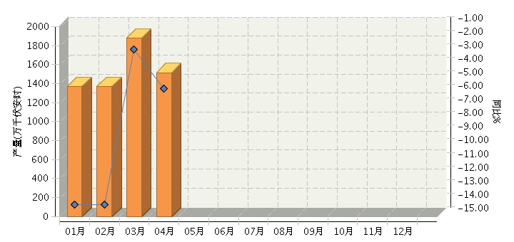 根据国家统计局公布数据,2017年1~4月全国铅酸蓄电池行业累计完成产量同比增长-6.97%。其中:4月份完成产量同比增长-5.57%。2017年全国铅酸蓄电池行业月度产量及同比如下图所示。