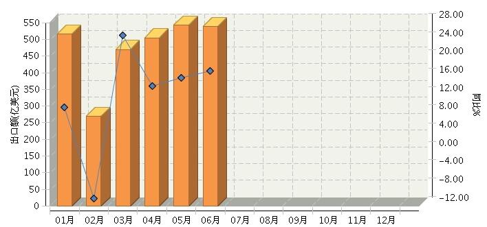 2017年1月~6月全国轻工全行业月度出口额及同比