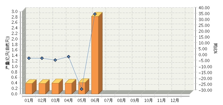 根据国家统计局公布数据,2017年1~6月全国碱性蓄电池行业累计完成产量同比增长15.35%。其中:6月份完成产量同比增长37.96%。2017年全国碱性蓄电池行业月度产量及同比如下图所示。