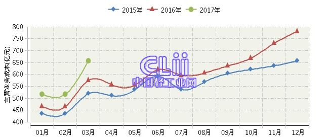 全国家具行业连续三年月度主营业务成本对比