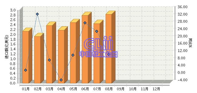 2017年1~8月我国进口家具累计同比增长13.95%