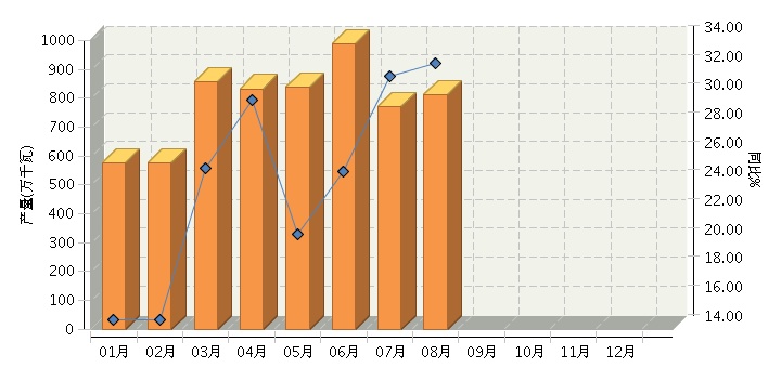 根据国家统计局公布数据,2017年1~8月,全国太阳能电池行业累计完成产量同比增长21.46%。8月份完成产量同比增长32.38%。2017年全国太阳能电池行业月度产量及同比如下图所示。