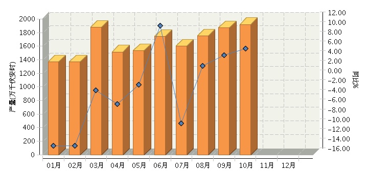 根据国家统计局公布数据,2017年1~10月全国铅酸蓄电池行业累计完成产量同比增长-1.23%。其中:10月份完成产量同比增长5.91%。2017年全国铅酸蓄电池行业月度产量及同比如下图所示。