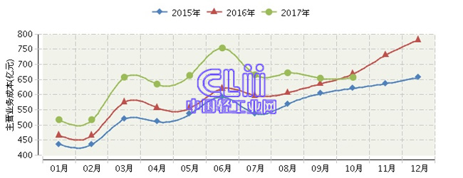 2017年1~10月全国家具行业主营业务成本累计同比增长10.64%