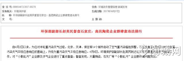 而这次全面推进建陶行业煤改气,可以说也在意料之中。今年4月份,环境保护部副部长赵英民到达石家庄开展重污染天气督查工作,高邑县陶瓷企业因治污设施不正常运行问题突出,已被点名批评。当时赵英民已经指出,高邑县必须对陶瓷行业进行重拳治理,尽快推进工业园区集中供气措施,实现陶瓷行业统一供气全覆盖,确保企业持续稳定达标排放。随后4月7日,高邑环境保护局便下发关于陶瓷企业停产整改的通知。