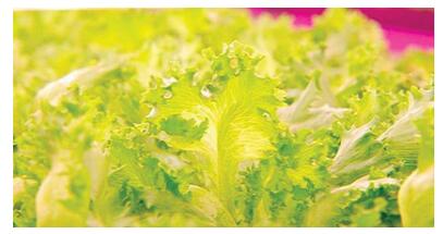 图4. 顶图显示在Hubbell Lighting公司的NutriLED照明下,植物茁壮成长;而其他三图显示城市莴苣农场采用GE日本公司开发的LED灯具,在受控环境中提高产量。