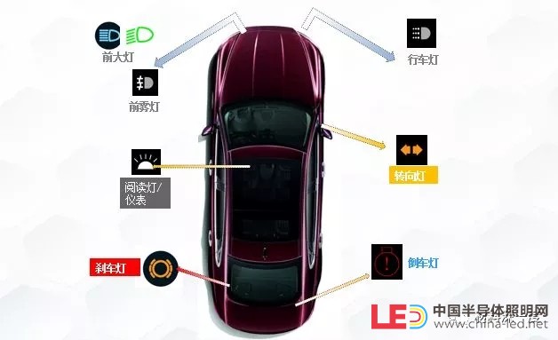 LED的应用使汽车灯具的光学设计形式更加多元化,同时提供了更高的色温,更宽及更均匀的照明效果。