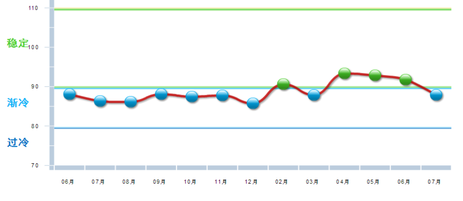 据中国轻工业经济运行及预测预警系统数据显示,2018年7月中国酿酒制造业景气指数为87.90,处在“渐冷”区间,较6月下降3.87点。