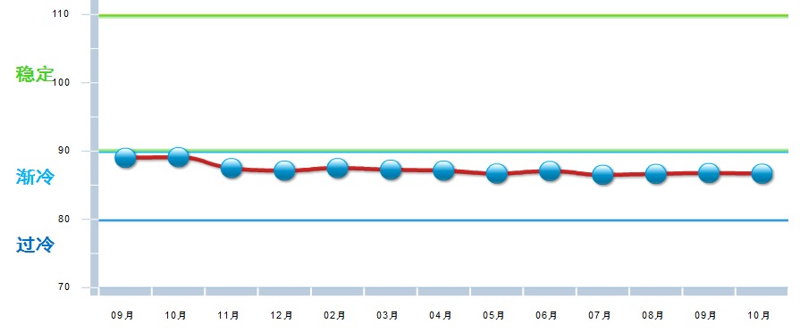 四项分项景气指数较上月均有下降,其中:主营业务收入景气指数86.96,位于“渐冷”区间,较上月下降0.16点;出口景气指数为97.09,位于“稳定”区间,较上月上升2.99点;资产景气指数为87.28,位于“渐冷”区间,较上月下降0.82点;利润景气指数81.22,位于“渐冷”区间,较上月下降0.83点。