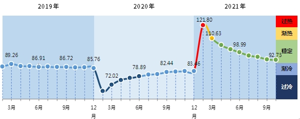 2021年10月中国轻工业景气指数92.73