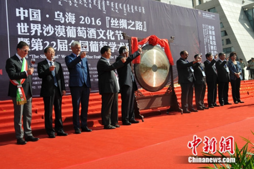 9月3日,由中国农学会葡萄分会、内蒙古贸促会、乌海市人民政府等主办的中国乌海2016“丝绸之路”世界沙漠葡萄酒文化节暨第22届全国葡萄学术研讨会开幕式于乌海市当代中国书法艺术馆举行。