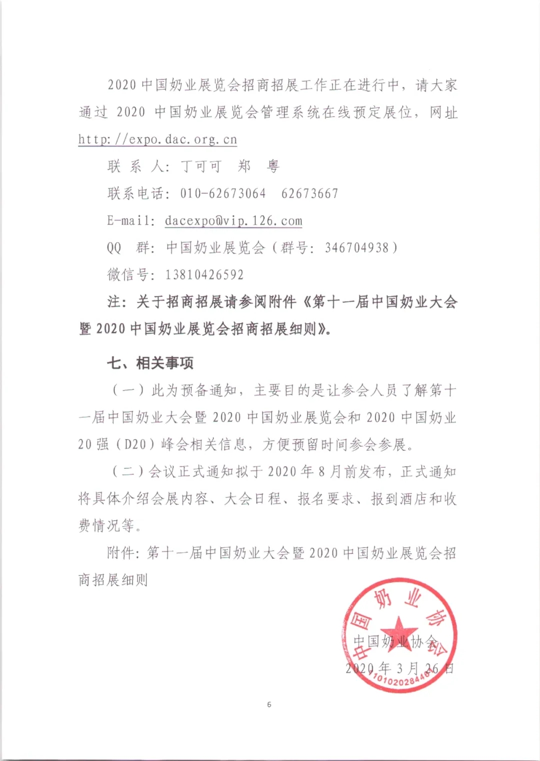 3月27日,中国奶业协会向相关组织机构公开发出通知,第十一届中国奶业大会暨2020中国奶业展览会和2020中国奶业20强(D20)峰会同期同地召开,举办时间确定为2020年10月11-13日,举办地在河北省石家庄国际会展中心。 据了解,第十一届中国奶业大会暨2020中国奶业展览会,原通知于2020年9月11-13日在河北省石家庄国际会展中心举办。对于大会更改时间的主要原因,中国奶业协会方面表示,基于我国新冠肺炎疫情防控趋势向好而全球疫情大流行、形势依然复杂严峻的情况,为严格落实党中央、国务院关于“外防输入,内防反弹”的总体防控策略,切实保障参会人员的身体健康和生命安全,经广泛听取企业和有关方面的意见,并经农业农村部同意,中国奶业协会作出以上决定。 具体文件内容如下: