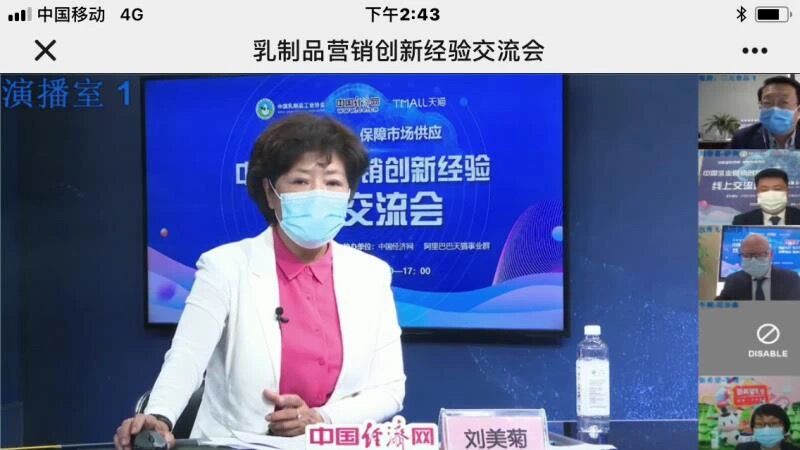 4月1日,由中国乳制品工业协会主办、中国经济网、阿里巴巴天猫事业群协办的创新营销思路,保障市场供应——中国乳业营销创新经验交流会以线上会议的形式举行。中国乳制品工业协会原理事长、国际乳品联合会中国国家委员会名誉主席宋昆冈、内蒙古伊利实业集团股份有限公司副总裁刘春喜、蒙牛集团电商业务部总经理唐睿、光明乳业股份有限公司随心订营销中心总经理李秀坤、中国飞鹤有限公司副总裁魏静、北京三元食品股份有限公司副总经理张俊、贝因美股份有限公司总经理包秀飞、新希望乳业新零售总经理李瑾等企业代表及尼尔森快速消费品研究部门乳制品行业总监牛瑛、阿里巴巴天猫快速消费品事业部类目品牌营销总监山睦、阿里巴巴天猫事业群大食品行业运营总监士仓等市场调研及渠道商的代表出席会议。会议由中国乳制品工业协会常务副理事长兼秘书长、国际乳品联合会中国国家委员会副主席刘美菊主持。
