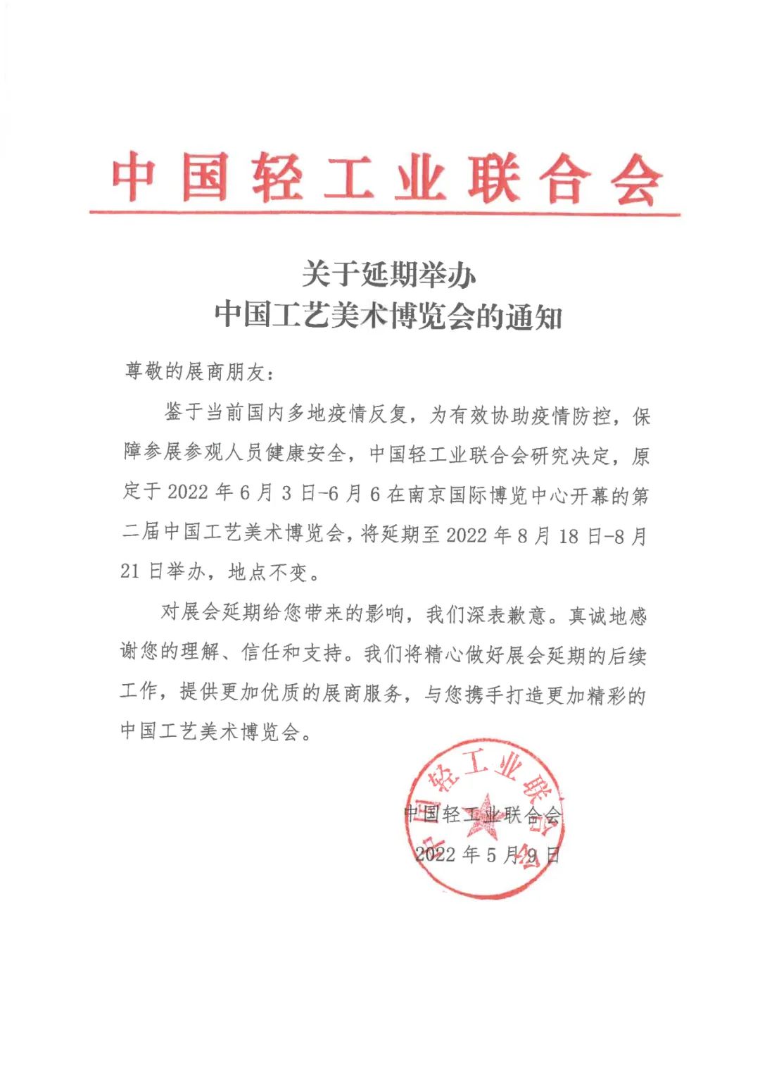 第二届中国工艺美术博览会延期至8月18-21日