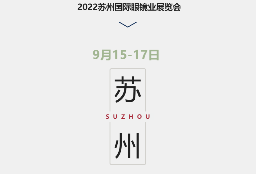 2022苏州国际眼镜业展览会重新定档9月15-17日在苏州国际博览中心举办。由于疫情等不确定性因素,原计划今年秋季举办的第三十四届中国国际眼镜业展览会延期至明年举办。距离开展已不足100天,小编特此将展览、参观、报名的最新消息打包奉上,想要参展、观展的新老朋友们抓紧报名!