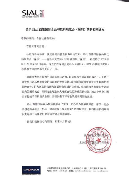 SIAL西雅国际食品展(深圳)将于2023年8月28—30日在深圳会展中心(福田)举办