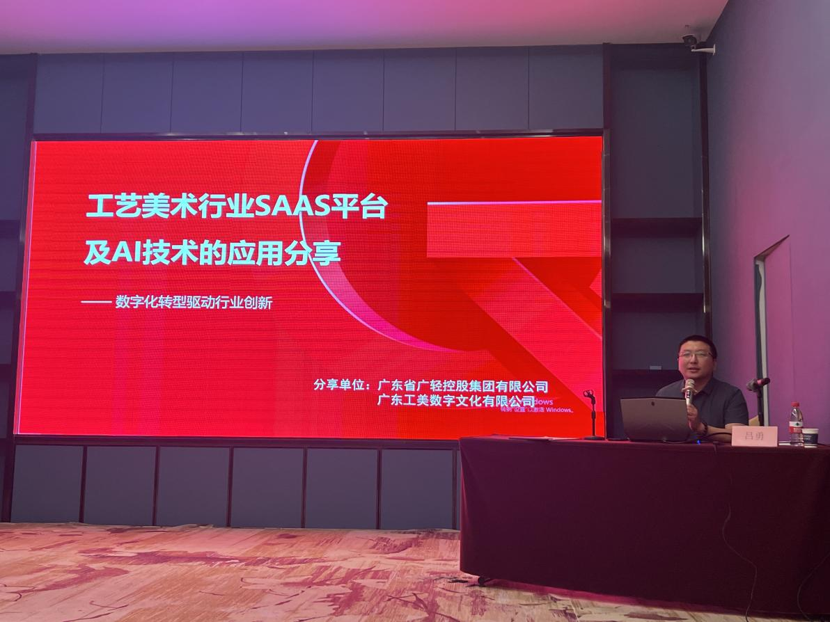 广东工美数字文化有限公司总经理吕勇携数智科技项目总监韩淇参加本次研修交流,并围绕 “AI 技术赋能工艺美术创新发展”主题,结合行业发展形势,提出传统工艺美术行业的痛点、转型思路和发展措施。
