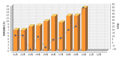 2013年1~10月,全国文教体育行业累计完成利润总额99.29亿元,同比增长15.44%。其中:5月份完成利润总额9.86亿元,同比增长-4.6%,此后止跌回升;8月份完成利润总额11.72亿元,同比增长22.97%;9月份完成利润总额11.78亿元,同比增长28.39%;10月份完成利润总额14.36亿元,同比增长57.73%。