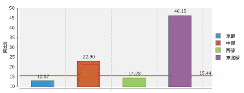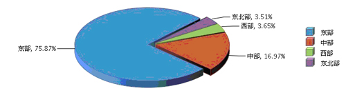 分地区看东部地区占比高东北地区增长快,2013年1~10月,东部完成累计利润总额75.33亿元(占75.87%),同比增长12.87%;中部完成累计利润总额16.85亿元(占16.97%),同比增长22.9%;西部完成累计利润总额3.63亿元(占3.65%),同比增长14.28%;东北部完成累计利润总额3.48亿元(占3.51%),同比增长46.15%。