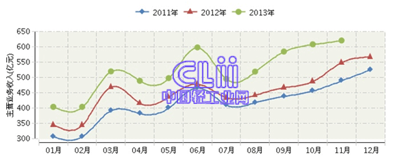 - 2013年1~11月家具行业主营业务收入2014/1/27 10:13:31