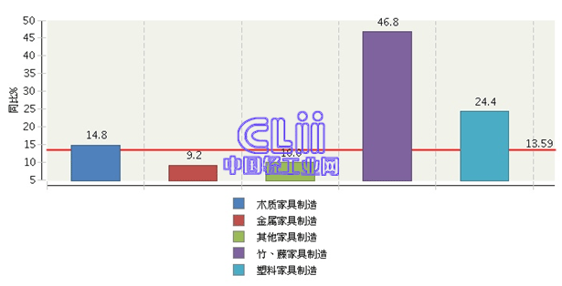 图5 2013年1~11月家具子行业规模以上企业累计主营业务收入增速情况
