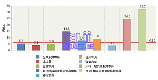 图5 2013年家具行业主要商品累计出口值增速情况