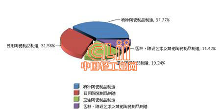 图3 2014年1~2月全国陶瓷行业累计主营业务收入行业小类占比情况
