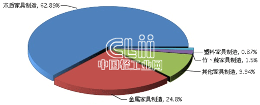 图4 2014年1~3月家具子行业规模以上企业累计利润总额占比情况