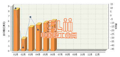 图2 2014年1~6月我国陶瓷砖月度出口额及同比