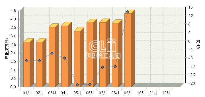 2014年1~9月,全国灯具及照明装置累计产量同比增长14.71%。其中9月份产量同比增长12.11%。