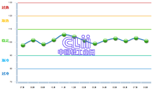 图1 2013年7月~2014年8月家具行业出口景气指数变化态势