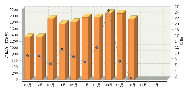 根据国家统计局公布数据,2014年1~10月全国铅酸蓄电池行业累计完成产量18,740.30万千伏安时,同比增长10.00%。其中:10月份完成产量1904.61万千伏安时,同比增长2.55%。2014年全国铅酸蓄电池行业月度产量及同比如下图所示。