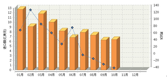 2014年10月我国食品行业累计进口额同比下降34.2%