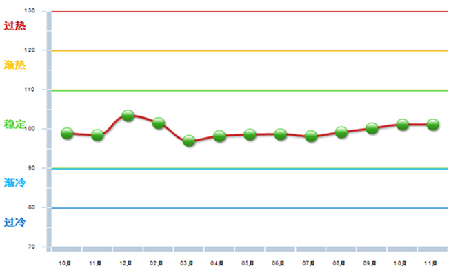 - 2014年11月自行车行业景气指数1002015/1/20 9:01:51