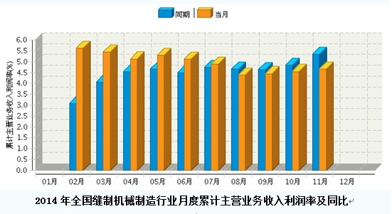 2014年11月缝制机械制造行业累计主营业务收入利润率为4.66%