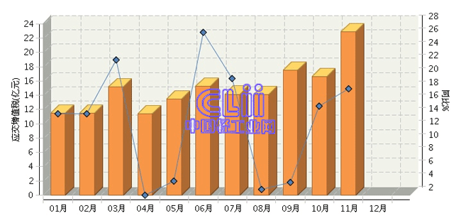 根据国家统计局公布数据:2014年1~11月,全国家具行业的累计应交增值税为163.46亿元,同比增长12.99%。其中:11月份应交增值税同比增长18.20%。