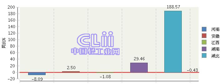 2014年1月~12月,中部玩具行业完成累计利润总额同比增长-0.43%。其中,湖北完成利润总额同比增长188.57%,为中部地区利润总额增速最高的省区。然后是湖南累计利润总额同比增长29.46%,安徽累计利润总额同比增长2.50%,河南、江西两省利润总额出现负增长,分别为-8.09%和-1.08%。