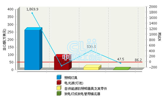 2014年,湖北照明行业对韩国完成累计出口额365.42万美元,同比增长86.25%。其中,照明灯具完成累计出口额262.76万美元,同比增长1869.89%;电光源(灯泡)累计出口额85.67万美元,同比增长-52.33%;自供能源的照明器具及其零件累计出口额16.28万美元,同比增长509.56%;放电灯或放电管用镇流器累计出口额0.7万美元,同比增长47.48%。