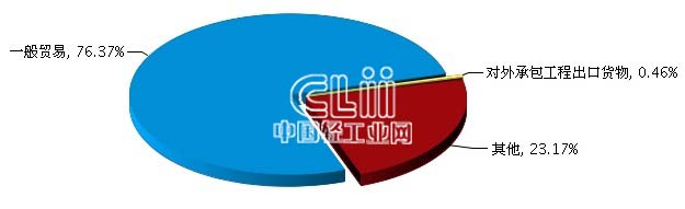 其中,一般贸易完成累计出口额7.52万美元,占全部出口总额的76.37%;其他累计出口额2.28万美元,占全部出口总额的23.17%;对外承包工程出口货物累计出口额0.05万美元,占全部出口总额的0.46%。