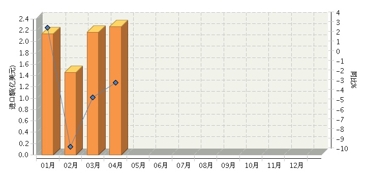 2015年1月~4月,全国五金行业累计完成进口额8.02亿美元,同比增长-2.83%。4月份全行业完成进口额及增速再次双提高,当月完成进口额2.26亿美元,成为2015年以来的最高值,同比增长-2.54%,依旧为负增长,但环比增速提高了1.53个百分点。