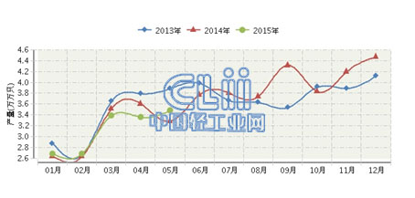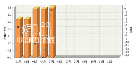 2015年1~5月,全国荧光灯行业累计完成产量15.75亿只,同比增长-4.93%。其中: 5月份完成产量3.48亿只,同比增长0.4%。
