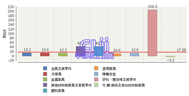 根据海关总署数据显示,2015年一季度,我国家具累计出口值在轻工主要商品出口中占10.30%,排名升至第三;家具出口值累计同比增长17.38%,比轻工主要出口商品的平均水平高了11.60个百分点。