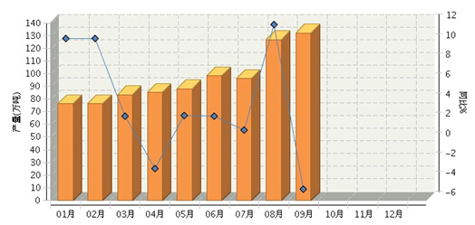 2015年1月~9月,全国规模以上罐头企业累计完成产量868.22万吨,同比增长1.68%。其中:1月份完成产量76.22万吨,同比增长10.47%;2月份产量76.22万吨,增长10.47%;3月份产量83.43万吨,增长2.53%;4月份产量85.34万吨,下降2.74%;5月份产量88.14万吨,增长2.63%;6月份产量98.38万吨,增长2.52%;7月份产量96.31万吨,增长1.14%;8月份产量126.96万吨,增长11.84%;9月份产量132.3万吨,下降4.88%。