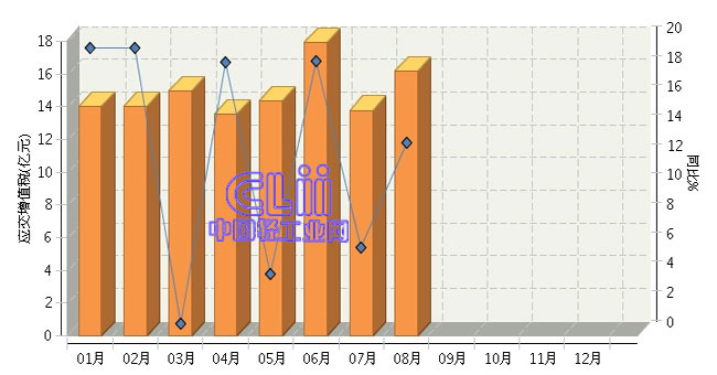 根据国家统计局公布数据:2015年1~8月,全国家具行业的累计应交增值税为118.62亿元,同比增长12.13%。其中:8月份应交增值税同比增长13.11%。