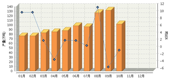 2015年1~10月,全国累计生产罐头971.77万吨,同比增长1.54%。自年初起产量环比增长,至9月份最高达132.3万吨,10月份产量回调为102.32万吨,同比小幅下降0.15%。