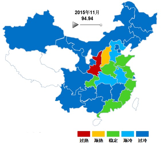 图3 2015年11月各地区文体用品景气指数显示状况