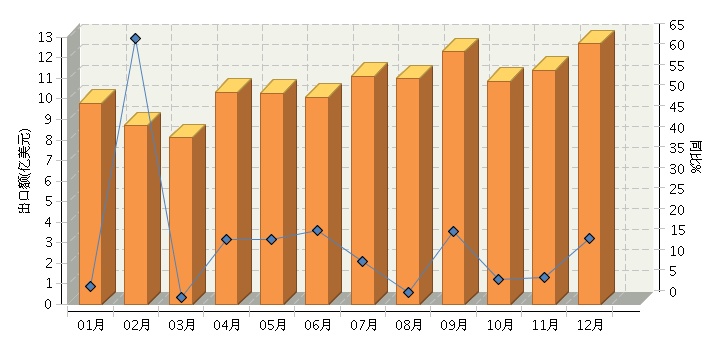 根据海关总署公布数据, 2015年1~12月,全国电池行业累计完成出口额同比增长12.91%。其中:12月份完成出口额同比增长16.09%。2015年全国电池行业月度出口额及同比如下图所示。