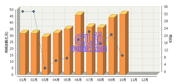 图2 2015年1~10月家具行业规模以上企业月度利润总额及增速